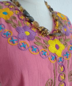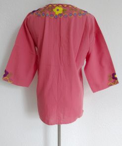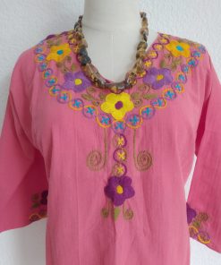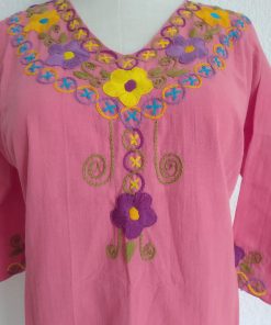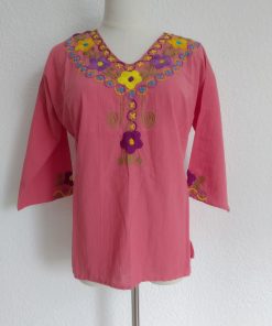 Fresca blusa de manta con flores bordadas a mano con hilo 100% de algodón!.