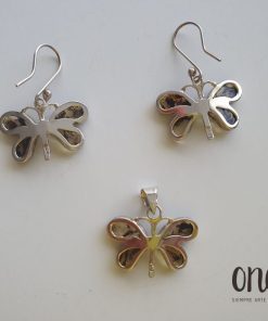 Juego de aretes y dije ámbar mariposas