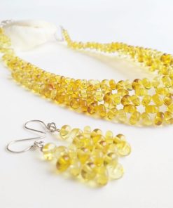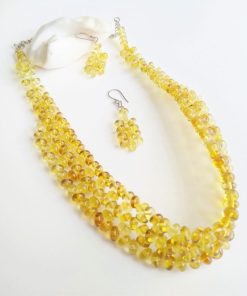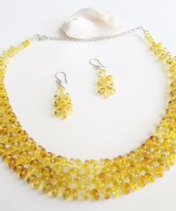 - Pequeñas flores y muy delicadas de ámbar armadas y puestas en un juego de collar y aretes para ti o para la persona que seguro tratas como una flor.